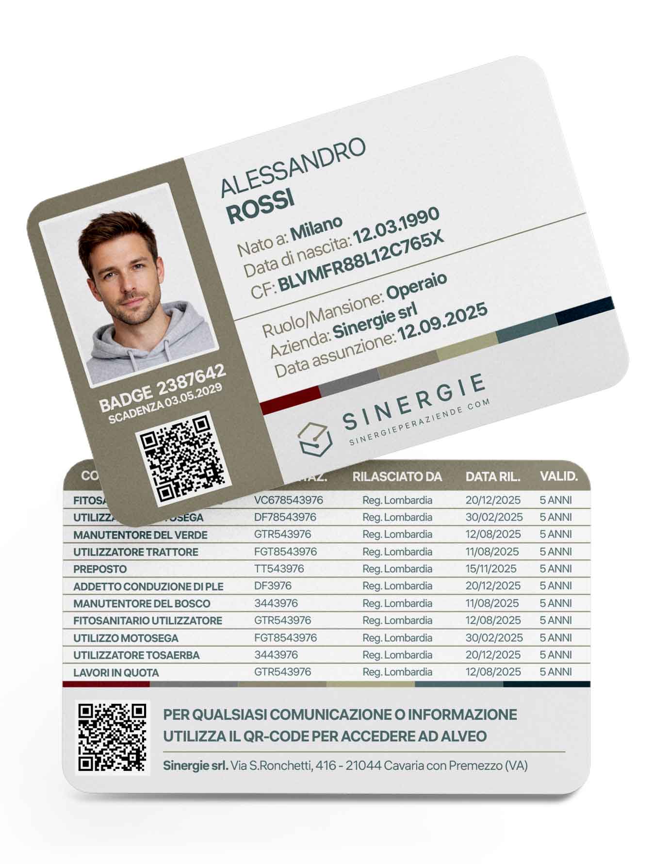 Un unico tesserino fisico e digitale per gestire attestati, scadenze, documenti di cantiere, sorveglianza sanitaria e controllo accessi, nel pieno rispetto del D.Lgs. 81/08 e del Decreto Legge 159/2025.